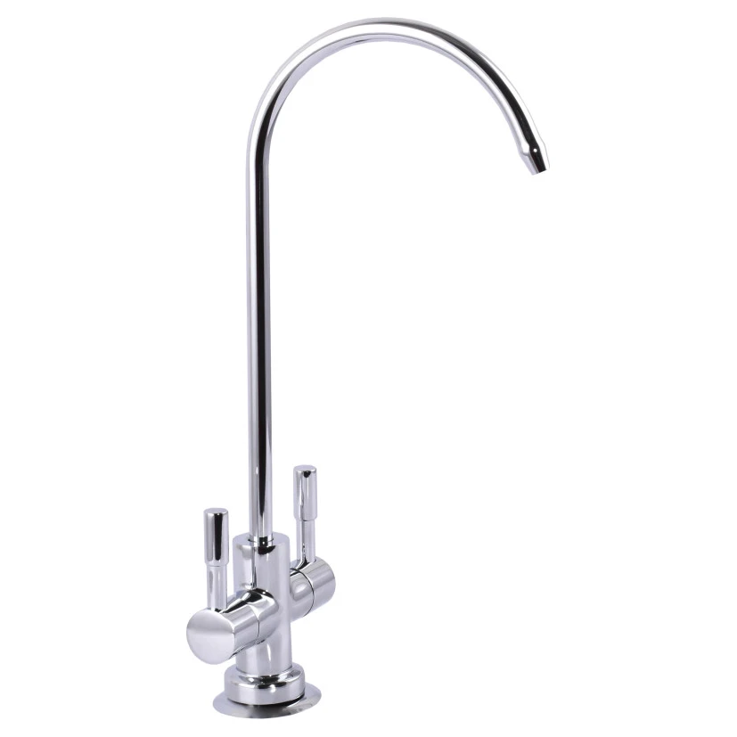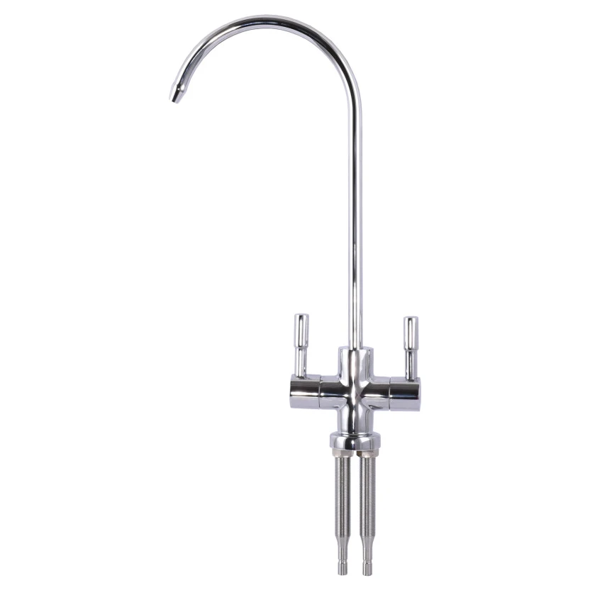 Globus Lux LAZER GLLR-76A-00 — це стильний та функціональний подвійний кран, розроблений для систем зворотного осмосу, що мають етап мінералізації. Завдяки наявності двох незалежних важелів, ви отримуєте можливість вибору: використовувати кришталево чисту воду для приготування їжі, чаю та кави або збагачену мінералами воду для пиття в сирому вигляді.