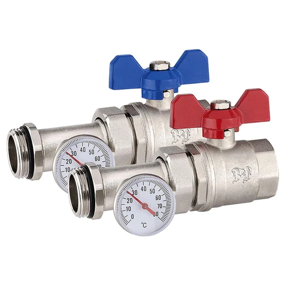 Кран кульовий з напівзгоном і термоментром для колектора PROFACTOR 1" (PF MB 848.25) застосовують як запірну арматуру на трубопроводах систем питного, господарсько-побутового та промислового призначення, гарячого водопостачання, опалення тощо, а також на технологічних трубопроводах, що транспортують рідини неагресивні до матеріалів виготовлення крана. Кран із напівзгоном дозволяє створювати легкороз'ємні вузли трубопровідних сантехнічних систем, а кільцеве ущільнення забезпечує герметичність приєднання. Пристрій обладнаний ручкою «метелик». Матеріал виготовлення: латунь. Шкала термометра: від 0 до 80 °C.