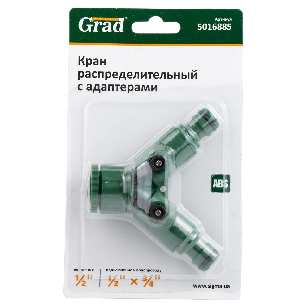 Кран розподільний з адаптерами 1/2" 2-а виходу в/р 1/2"×3/4" (ABS) GRAD (5016885) дозволяє без особливого зусилля з'єднувати або роз'єднувати різні пристрої і механізми системи поливу.