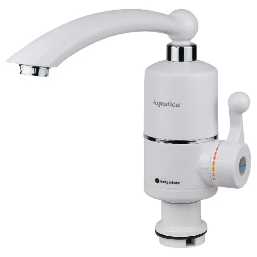 Кран-водонагрівач проточний NZ 3.0кВт 0.4-5бар для кухні гусак прямий на гайці AQUATICA (NZ-6B212W) Торгова марка AQUATICA Гарантія: 12 місяців Номінальна потужність: 3 кВт Потік гарячої води: 2–2,5 л/хв. Температура гарячої води 30–60°С Технічні дані: Довжина кабелю: 1,2 м Маса нетто: 0.78 кг Вилив Г-образний, поворотний 360° Нагрів.-й елемент ТЕН Струм 13.6 А Матеріал змішувача Термостійкий ABS-пластик Тип: Кран-водонагрівач, Напруга: В 220 В. Частота, Гц 50 Гц (60 Гц) Тип монтажу: На раковину/мийку Проточник для гарячої води є змішувач з індивідуальним підігрівом і встановлюється на кухні, в заміських будинках або закладах громадського користування. Проточний водонагрівач складається з корпусу, набору нагрівальних елементів, поворотного Г-образного виливу і маніпулятора, що дозволяє регулювати натиск і температуру нагрівання струменя. Переваги: привабливий зовнішній вигляд; швидкий підігрів; невеликі габарити; захист електричної частини від попадання вологи; висока якість виготовлення.