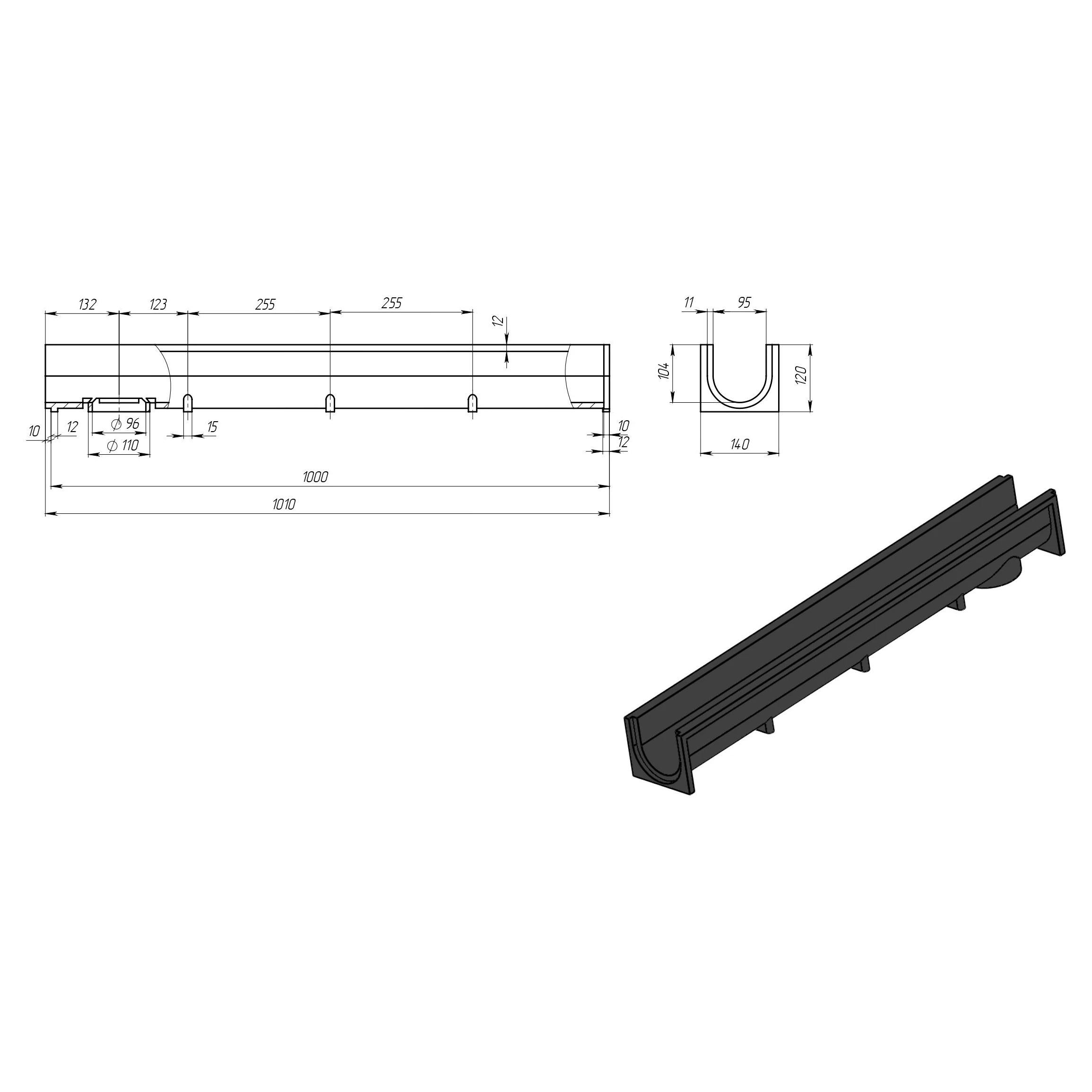 Лоток водовідводу Україна мілкий 1000х140х75 мм (B125)
