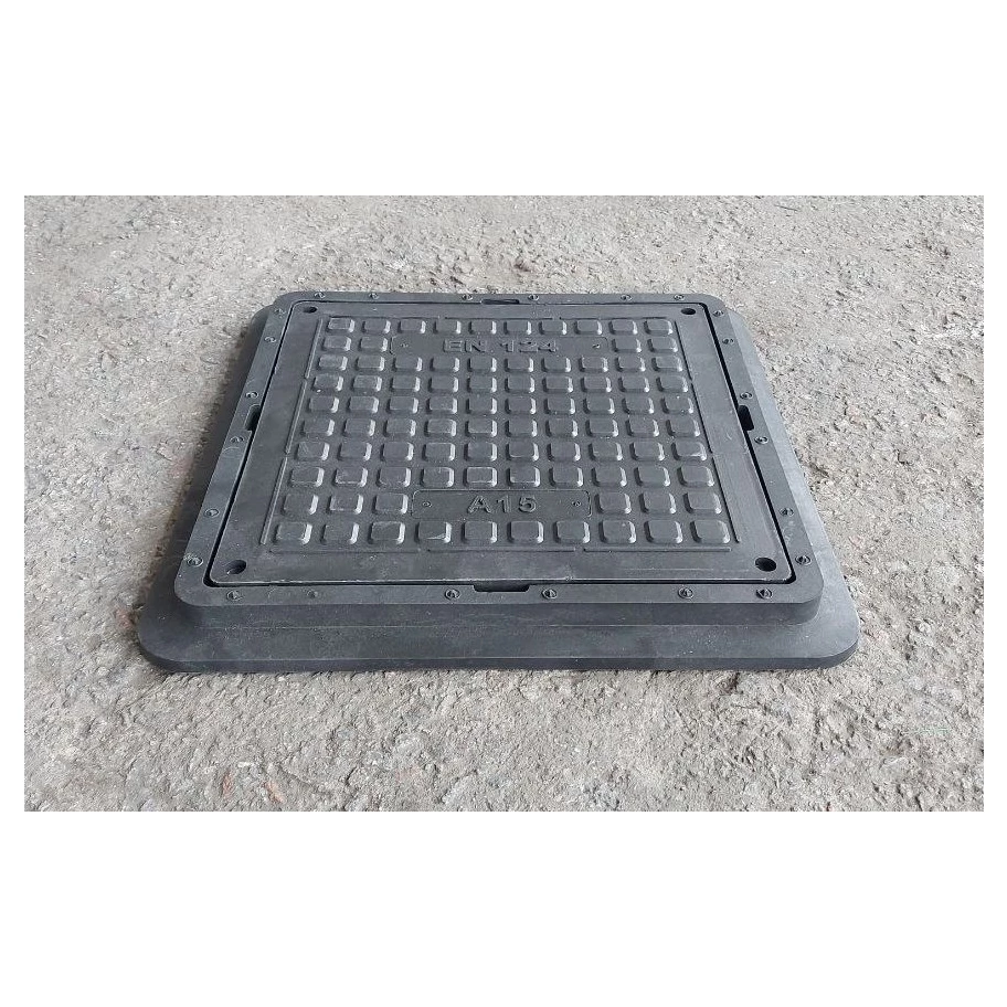 Люк каналізаційний полімерпіщаний квадратний Посилений (А15) 4т 740мм чорний