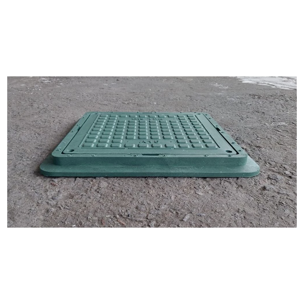 Люк каналізаційний полімерпіщаний квадратний Посилений (А15) 4т 740мм зелений