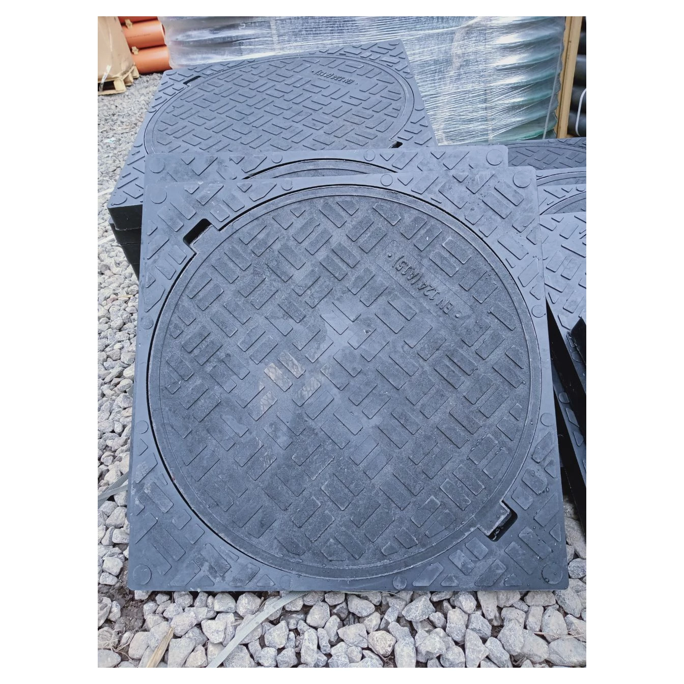 Люк каналізаційний полімерпіщаний Легкий Євро (А15) 3т 670мм квадратний з круглою кришкою