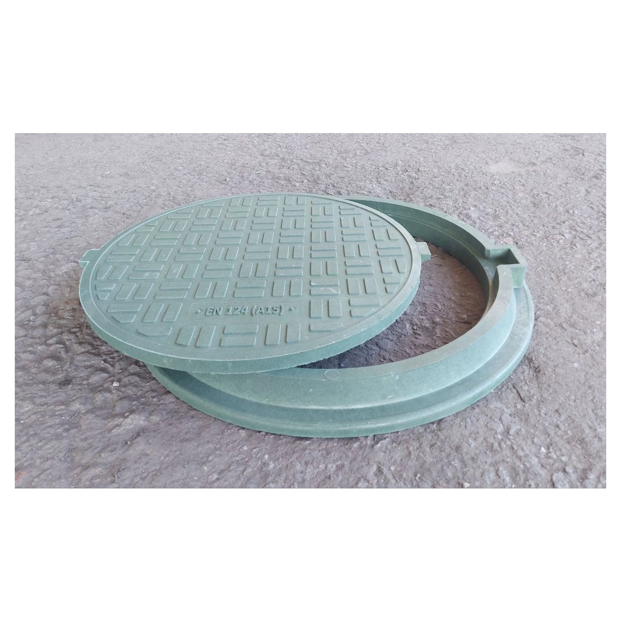 Люк каналізаційний полімерпіщаний Легкий Євро (А15) 3т 760мм зелений