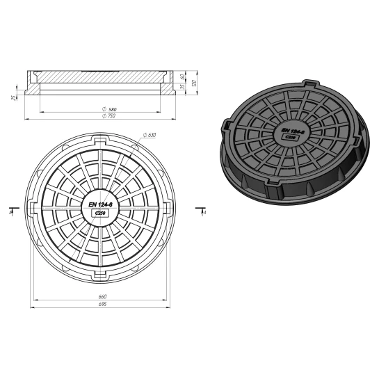 Люк каналізаційний полімерпіщаний Важкий (С250) 25т 750мм чорний