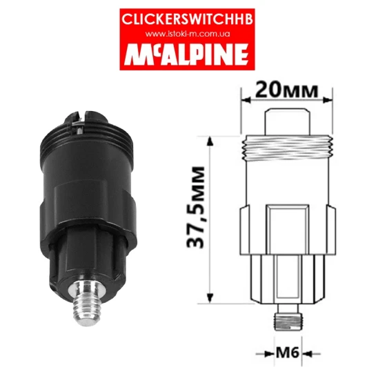 Механізм "клік-клак" McALPINE CLICKERSWITCHHB призначений для сифонів "клік-клак" до ванни або душового піддону британського виробника McALPINE. McALPINE - британський виробник сантехніки з 1902 року. Ця фірма стала першою в Великобританії виготовляти пластикові сифони. Зараз компанія експортує до багатьох країн більше 10 000 найменувань сантехніки для каналізації і вентиляції. Продукція компанії McALPINE витримує екстремальний холод і спеку, не розбивається і не ламається під час експлуатації.
