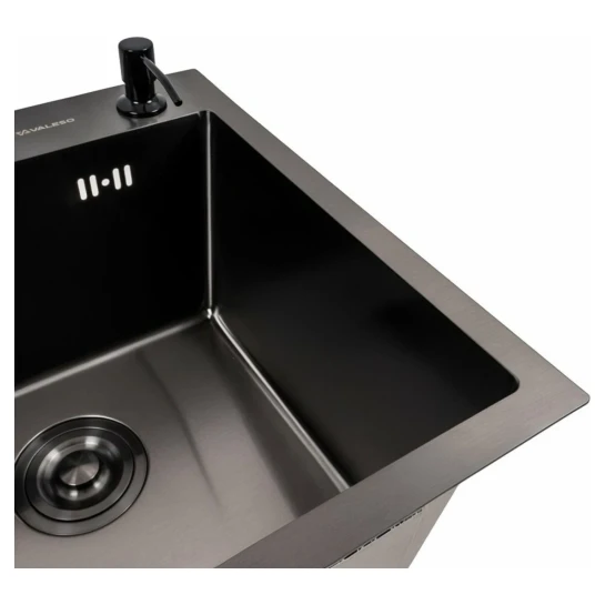 VALESO Handmade — це поєднання індустріальної міцності та витонченого дизайну. Виготовлена за технологією Handmade, ця мийка має чіткі лінії та ідеальну геометрію, що неможливо при звичайному штампуванні. Чорне PVD-покриття не лише надає виробу преміального вигляду, але й захищає метал на молекулярному рівні.