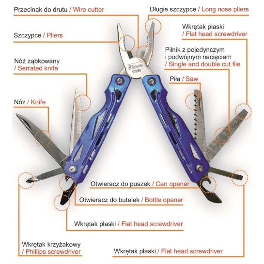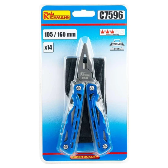 Цей компактний та зручний мультитул стане незамінним помічником удома, на роботі чи в поході. Виготовлений із міцної нержавіючої сталі, він витримає будь-які навантаження. У складеному вигляді має всього 105 мм, тому легко поміститься в кишеню чи рюкзак. А ще в комплекті йде зручний чохол для зберігання.