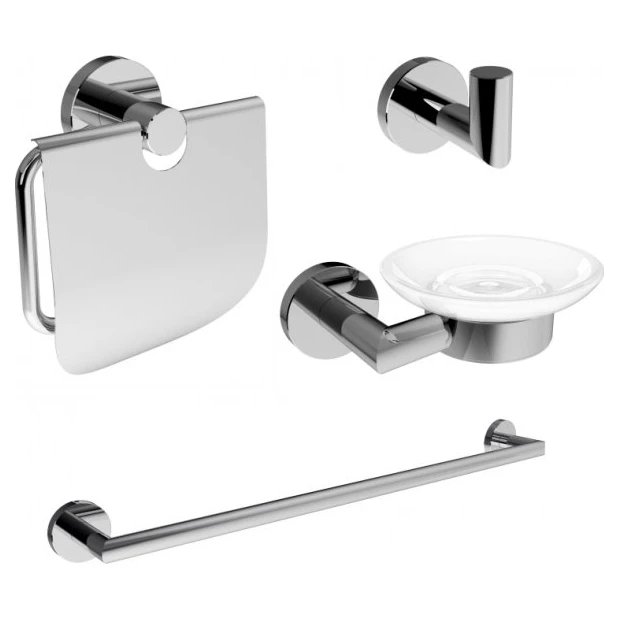 Набір аксесуарів 4 в 1 IMPRESE HRANICE HRANICE набір аксесуарів (4 в 1), IMPRESE 100014 HRANICE рушникотримач (60см) 131100 HRANICE гачок 100100 HRANICE мильниця 110100 HRANICE утримувач для туалетного паперу 140100 Кріплення на 2 отвори між центрами отворів 18 мм