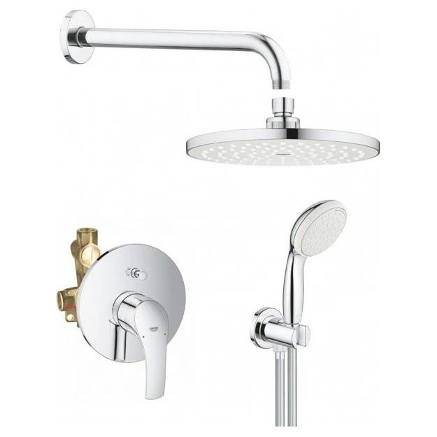 Набiр для душа скритий монтаж Eurosmart GROHE (25183004) Компанія GROHE — провідний у світі виробник санітарно-технічного обладнання. Компанія була заснована в 1936 році Фрідріхом Грое й реалізує свою продукцію у 130 країнах світу. GROHE є законодавцем стандартів якості, функціональності та дизайну як провідний світовий бренд сантехнічної галузі. Характеристики: Тип - Душовий гарнітур Комплектація: - Верхній душ - Змішувач - Кронштейн - Прихована частина для монтажу змішувача - Ручна лійка - Тримач для душу - Шланг для душа Діаметр ручної лійки - 100 см Кількість типів струменя - 2 Довжина кронштейна- 28,6 см см