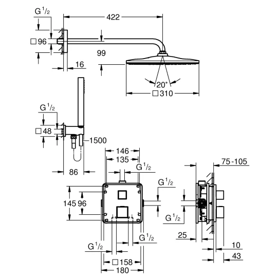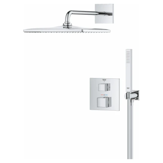 Набір для душу GROHE Grohtherm Cube 310 – це втілення сучасного мінімалізму, високих технологій та неперевершеного комфорту, створений для перетворення вашої ванної кімнати на справжній SPA-оазис. Цей розкішний комплект від світового лідера сантехніки GROHE пропонує досконалу гармонію форми та функціональності.