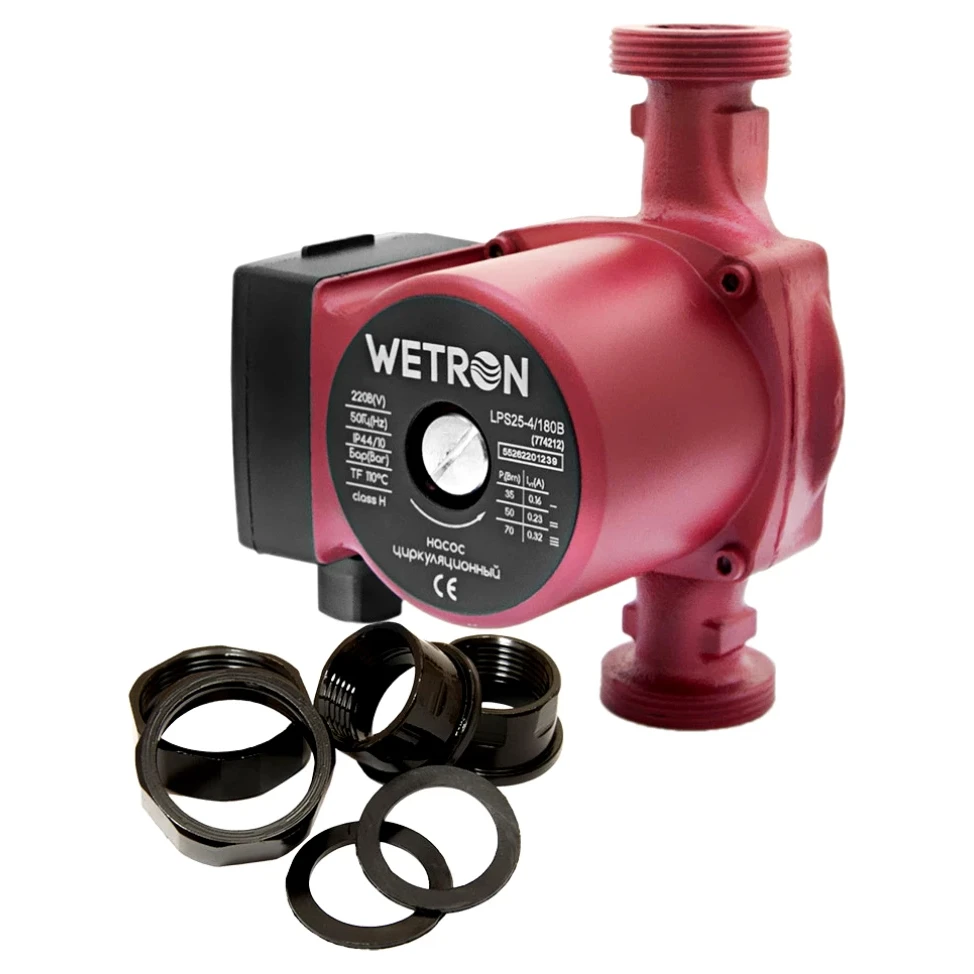 Насос циркуляційний WETRON 75Вт Hmax 4м Qmax 40л/хв 1 1/2" 180мм бордо + гайки 1"