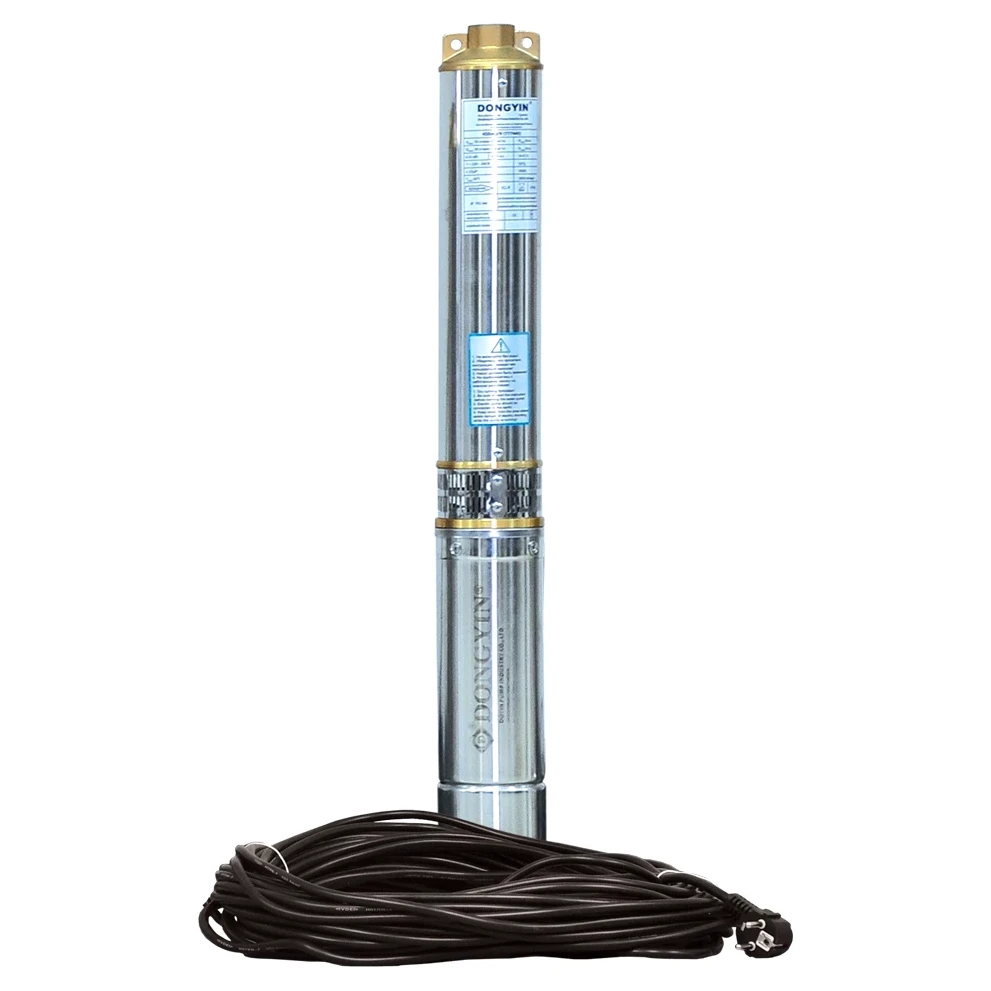 Насос вiдцентровий Dongyin 1.1кВт H 65(43)м Q 140(100)л/хв Ø102мм 35м кабеля Артикул : 777494 Насоси даної серії призначені для перекачування чистої води і можуть застосовуватися: для побутового використання при водопостачанні з свердловин і резервуарів (обов'язкова установка кожуха охолодження), для перекачування води в резервуари, для зрошувальних систем. Технічні дані : Тип - відцентрові ; Потужність - 1100 Вт ; Діаметр свердловини - від 120 до 150 мм ; Максимальний напір - 65 м ; Максимальна продуктивність - 140 л/хв ; Напруга - 220 В; Номінальна сила струму- I (А) 6.6 ; Частота - 50 Гц; Діаметр напірного патрубка DN2 - 1 1/4 "(дюйм) . Гарантiя -2 роки.