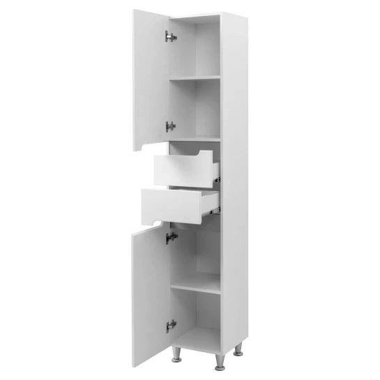 Пенал Верона 40*35 см. з корзиною, 2 шухляди, сірий V.M. Верона – серія, втілення оригінальності та сучасного дизайну у ванній. Пенал розділений на верхню та нижню частини у співвідношенні 1/1. У верхній частині одна полиця, виготовлена із ДСП білого кольору товщиною 16 мм. На нижній частині розташований кошик для білизни. Дверцята на петлях DC з плавним дотягом. Пенал має два ящики з телескопічними напрямними. Виріб має інтегровану сіру ручку, яка гармонійно виглядає. Колір – білий із декоративними вставками сірого кольору. Корпус – ламіноване ДСП завтовшки 16 мм. Фасад – МДФ двостороннього ламінування завтовшки 16 мм. Комплектується модель ніжками із хрому. Пенал поставляється у зібраному вигляді. Характеристики: Колір фасаду: Білий Розмір пеналу: 200х40х35 см Ширина модуля: ЛДСП/МДФ Пенал: Лівий Тип монтажу:: Підлоговий