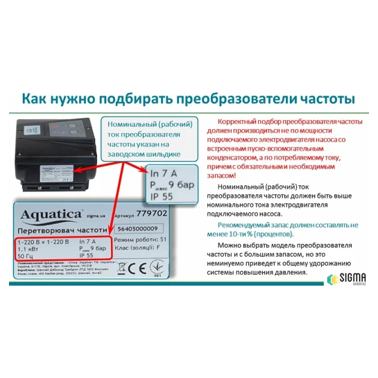 Частотний перетворювач застосовується для керування і захисту насосного обладнання в системах водопостачання і водовідведення. Завдяки своїй конструкції, він забезпечує плавний пуск електродвигуна, підтримує заданий рівень тиску води в системі шляхом зміни частоти вхідного електроживлення, здійснює запуск і зупинку насоса, захищає насос від роботи в критичній ситуації. Для зручності використання перетворювач оснащений рідкокристалічним дисплеєм, на якому в реальному часі відображається інформація про режим роботи насоса.