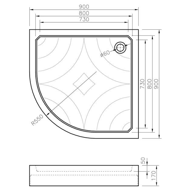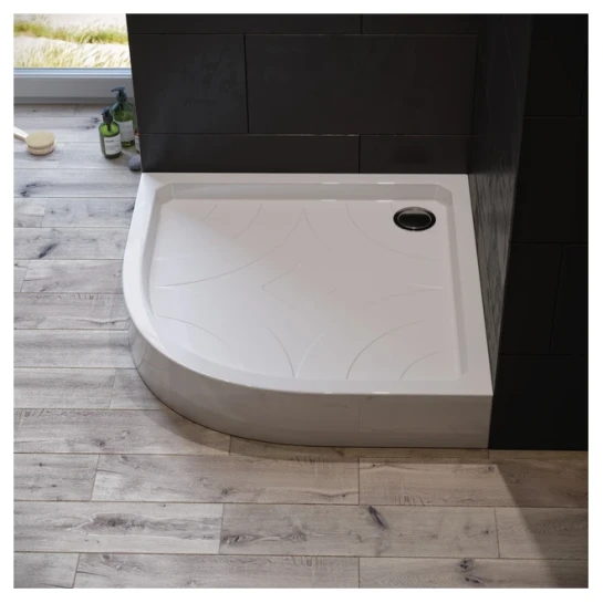 Піддон Grace акриловий 90x90 см. напівкруглий KOLLER POOL (GRACE90R) Компанія Koller Pool — це торгова марка європейської високоякісної сантехнічної продукції. Представлена тут модель універсального, кутового душового піддона серії Grace від Koller Pool розміром 80 x 80 см, має глибину 15 см та виготовлена з високоякісного акрилу. Піддон має отвір під окремо куплений сифон діаметром 6 см.