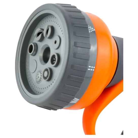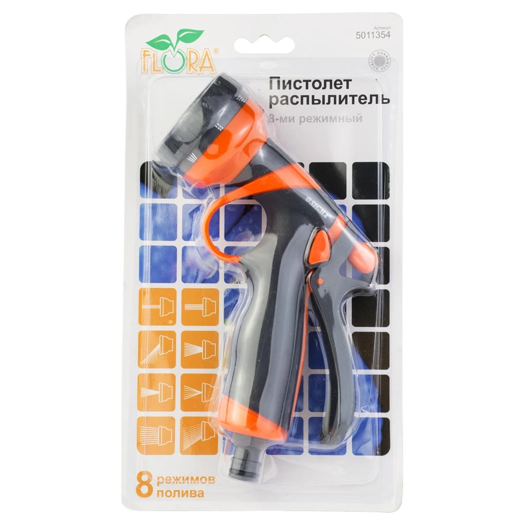 Пістолет-розпилювач 8-ми режимний (ABS+TPR) FLORA (5011354) призначений як насадка на поливальний шланг через швидкознімний коннектор. Дозволяє регулювати напрямок і ширину вихідного струменя під час поливу. Можливе застосування для чищення садових інструментів, обладнання та меблів.