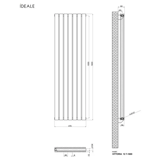 Радіатор дизайнерський IDEALE VITTORIA 12-7/1600/476 чорний матовий – це не просто пристрій для обігріву, а справжній витвір мистецтва, який перетворить ваш інтер'єр. Поєднання вишуканого дизайну та високої ефективності робить цей радіатор ідеальним вибором для сучасних будинків та квартир.