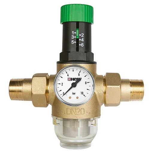 Редуктор тиску HERZ 1" ЗЗ (діапазон регулювання 1,0-6,0 бар) — це надійний виріб, який призначений для систем холодного водопостачання. Пристрій захищає системи від надлишкового тиску (знижує тиск на вході до робочого рівня). Обладнаний сітчастим фільтром із сіткою із нержавіючої сталі. Корпус редуктора виготовлений з якісної латуні, яка стійка до селективної цинкової корозії. Монтаж можливий на горизонтальній (фільтром донизу) і вертикальній ділянках трубопроводу. Максимальна робоча температура 40 °С. Тиск на виході можна регулювати шляхом повороту зеленого маховика. При повороті маховика за годинниковою стрілкою збільшується тиск на виході.