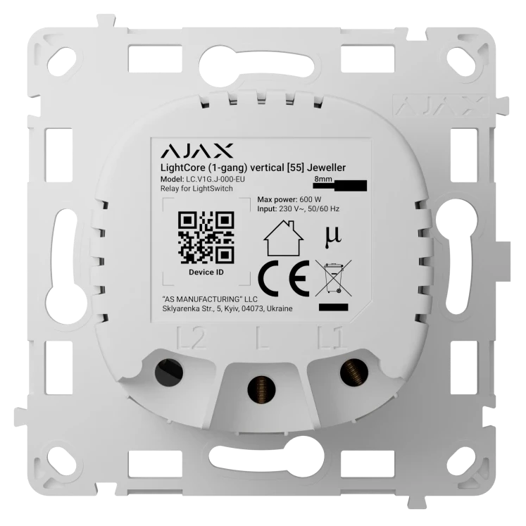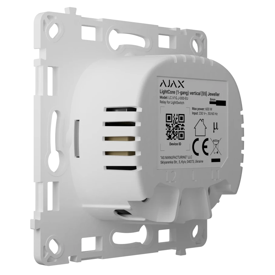 AJAX LightCore ASP - це інноваційне рішення для розумної автоматизації освітлення у вашому домі. Це компактне реле, яке легко замінює звичайний одноклавішний вимикач і дозволяє керувати освітленням дистанційно за допомогою смартфона.