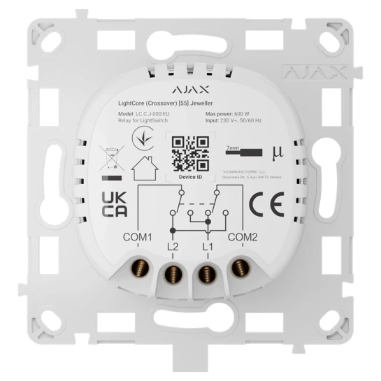 З появою LightSwitch в екосистемі Ajax користувачі системи отримали можливість керувати різними освітлювальними пристроями як на об'єкті, так і дистанційно, через Ajax. LightSwitch – це збірний пристрій, що складається з внутрішнього механізму LightCore, прозорої рамки та кольорової лицьової панелі. Всі компоненти розроблені людьми, які розуміються на роботі професійного електрика. Монтаж вимагає мінімум зусиль. Не потрібно прокладати сигнальні проводи або що-небудь змінювати в розподільчій коробці. LightCore навіть не потребує нуля. працює від фази живлення, якою керував старий вимикач. За розмірами LightCore ідентичний стандартному європейському вимикачу. Електрику потрібно 5–10 хвилин, щоб його замінити, і це вже включаючи демонтаж та встановлення нового. LightCore підтримує широкий спектр потужностей ламп: від 5 до 600 Вт.Це означає, що він підходить як для великої люстри, так і для нічного світильника.