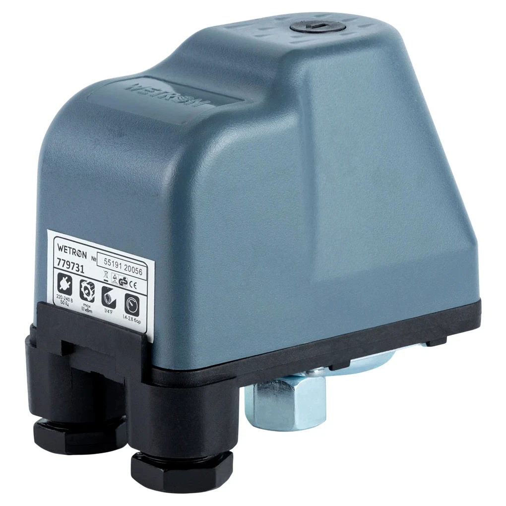 Реле тиску 1.5кВт 1.4-2.8 бар (гайка) WETRON SK-9C/1.5HP (779731) дозволяє підтримувати постійний тиск у водопровідній системі. Допомагає знизити споживання електроенергії та води, забезпечує захист насосів від зайвої роботи і передчасного виходу з ладу.