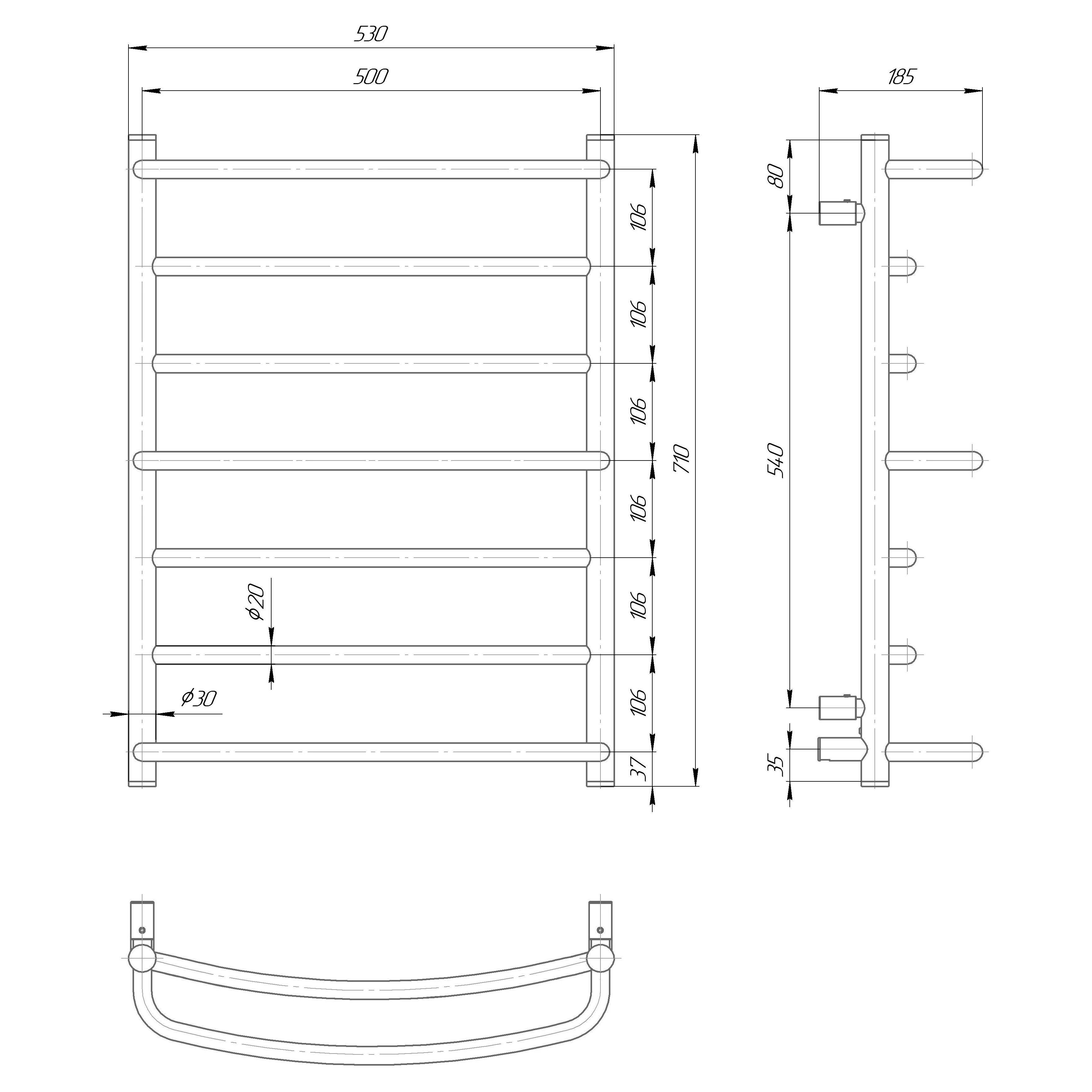 АКВА-ЛЮКС Рушникосушка з регулятором t Каскад-7 710х530х280 Нержавійка л/п Нагрівальний елемент: сухий ТЕН Регулятор температури розташований на вилці Максимальна температура нагріву: +55 С Висота: 720 мм Ширина: 530 мм Глибина: 270 мм Покриття нерж.сталь Країна-виробник: Україна Гарантія 2 роки Призначення - рушникосушка Тип - електричний Потужність 115 Вт Кількість секцій 7 Матеріал нерж.сталь В комплекті - кріплення.
