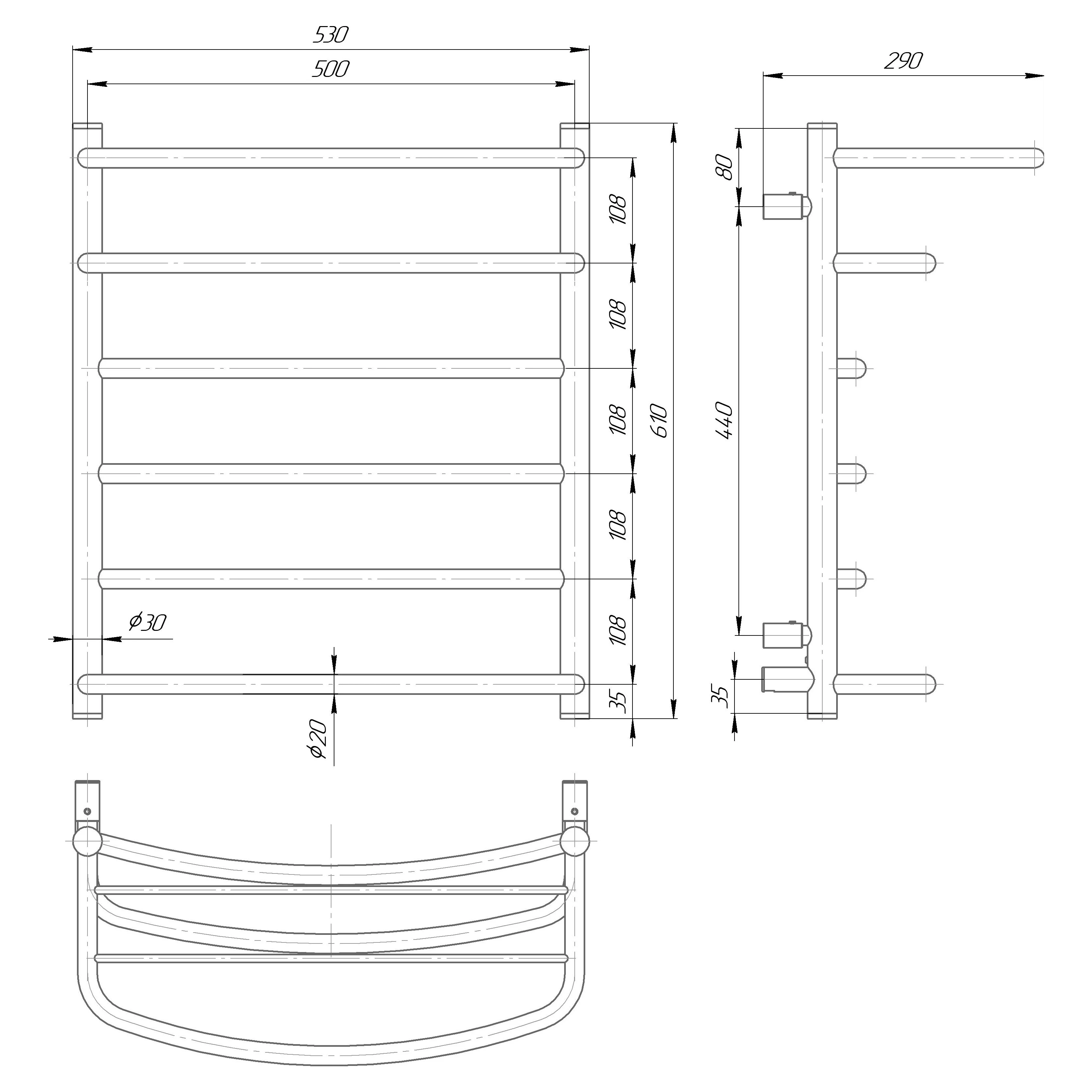 Рушникосушка електрична АКВА-ЛЮКС New Каскад з полицею 6 н/ж 610х530х290 з регулятором Нержавійка Характеристики: Модель: Елна-7 поворотна Нержавейка Вид: драбинка Підключення: зліва / справа Тип кріплення: стаціонарний Кількість секцій: 7 Тип тена: сухий Матеріал: нержавіюча сталь Колір: хром Номінальна потужність, Вт: 83 Максимальна робоча температура: 55 С Габаритні розміри, мм: 530х610х290 Країна виробник: Україна