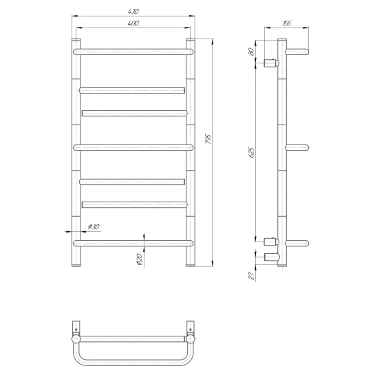 Рушникосушка електрична Елна Елна-7 (795 Х 430 Х 155) нерж л/п