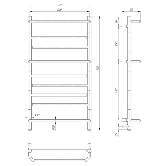 Рушникосушка електрична Елна Елна-9 (945 Х 530 Х 155) нерж л/п