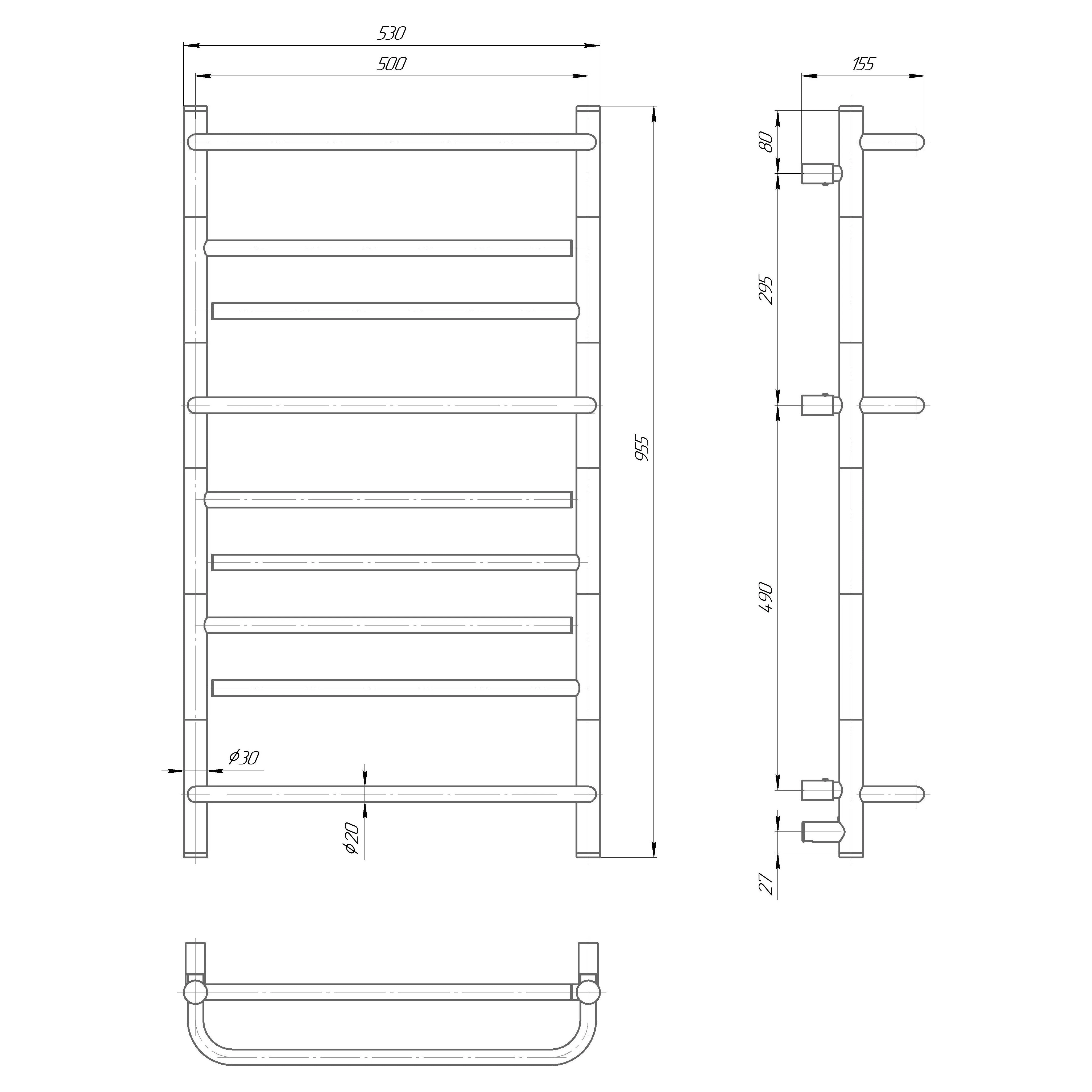 Рушникосушка електрична Елна Елна-9 (945 Х 530 Х 155) нерж п/п
