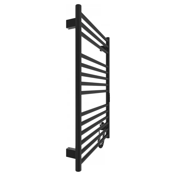 Електрична рушникосушарка HF Greenwich 770х530. Працює за технологією сухого ТЕНу. Обладнана вбудованим таймер-регулятором і конектором для підключення до живлення з будь-якого боку. Оснащена комплектом для прихованого підключення. Модель має 14 ребро з круглої труби та стійки з круглої труби. Матеріал - чорна сталь з антикорозійною обробкою. Варіанти покриття: чорний мат або білий мат. Температурні режими таймер-регулятора: 40°С, 45°С, 50°С. Час роботи: 3, 6 годин або постійний нагрів. Потужність 145 Вт. Гарантія - 3 роки.