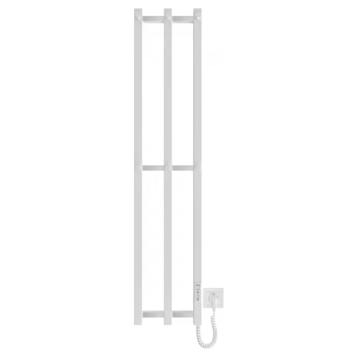 Електрична рушникосушарка HF Slim 1170х250. Працює за технологією сухого ТЕНу. Обладнана вбудованим таймер-регулятором і конектором для підключення до живлення з будь-якого боку. Оснащена комплектом для прихованого підключення. Модель має 3 ребера з круглої труби та стійки з квадратного профілю. Матеріал - чорна сталь з антикорозійною обробкою. Варіанти покриття: чорний мат або білий мат. Температурні режими таймер-регулятора: 40°С, 45°С, 50°С. Час роботи: 3, 6 годин або постійний нагрів. Потужність 110 Вт. Гарантія - 3 роки.