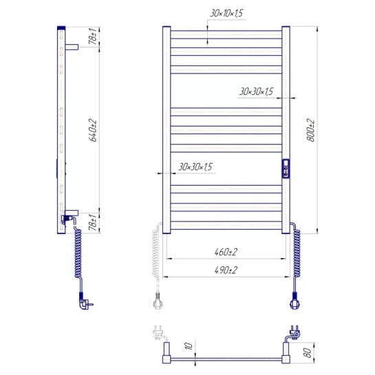 Виробник: Mario Колекція: Чікаго 800х530/500 Підключення: електрика Колір: Хром Гарантія: від виробника Висота 800 мм Ширина 530 мм Глибина 80 мм Міжцентрову відстань 500 мм Кількість ребер: 9 Діаметр підключення: G 1/2 '' Обсяг 2.4 л Вага 6.8 кг Рекомендована потужність ТЕНа (MEG / REG / MOA), W 200 Матеріал: нержавіюча сталь Марка стали: AISI 304 Країна-виробник: Україна Комплект поставки: полотенцесушитель - 1 шт. комплект кріплень - 1 шт. кран Маєвського - 1 шт. заглушка - 1 шт. паспорт - 1 шт. коробка - 1 шт.