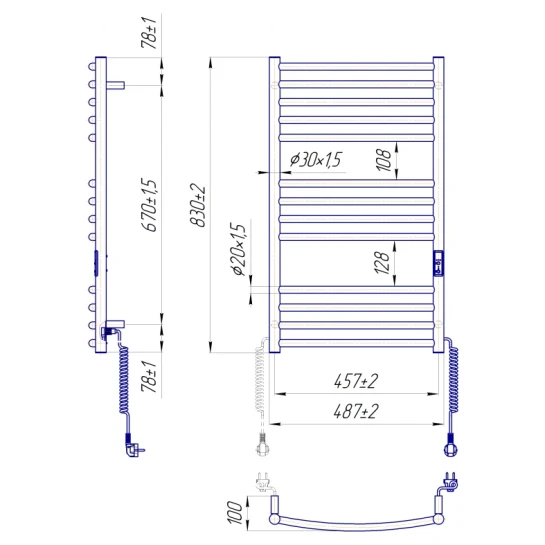 Товарна категорія: Рушникосушки. Група: Рушникосушки з нержавійки (Рушникосушки з нержавіючої сталі) Тип: електрична. Підключення: Низ. MARIO Рушникосушка Фенікс-ITR 830х500/100 електр. Бренд: MARIO Країна-виробник: Україна Модель: Класік Артикул: 2.2.1302.03.P Кількість ребер: 13 Висота: 830 мм., Ширина: 490 мм., Глибина: 100 мм Вага: 6,1 кг., Об'єм: - л. Ном. потужність: 170 Вт.