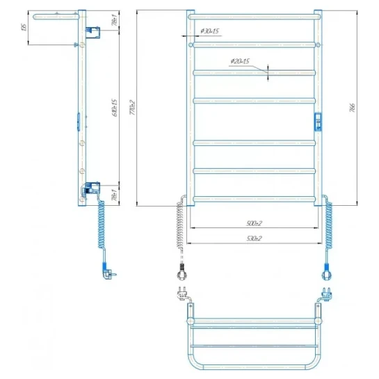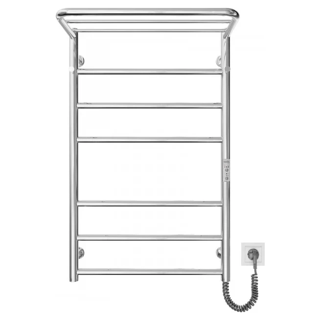 Електросушарка для рушників побутова Home-І 770х530/240. Обладнана таймер-регулятором. Сумісна з комплектом прихованого підключення. Має стояк з квадратного профілю. Виготовлена з полірованої нержавіючої сталі без хромування. Температурні режими таймер-регулятора: 40°С, 45°С, 50°С. Варіанти часу роботи: 3, 6 годин та постійний нагрів. Потужність 65 Вт. Гарантія – 20 років на корпус / 5 років на електричну частину.