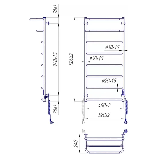 MARIO Рушникосушка Hotel-І 1090х530/240 електр. TR Бренд: MARIO Країна-виробник: Україна Товарна категорія: Рушникосушки. Група: Рушникосушки з нержавійки (Рушникосушки з нержавіючої сталі) Тип: електро. Підключення: низ Артикул: 2.3.6204.11.P Кількість ребер: 8 Висота: 1100 мм., Ширина: 520 мм., Глибина: 240 мм. Вага: 7.1 кг. Теплова потужність ТЕН: 125 Вт. (до +55 С)
