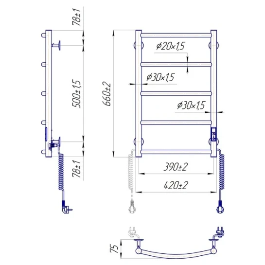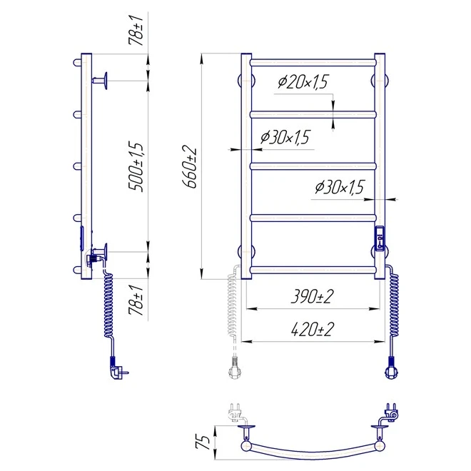 MARIO Рушникосушка Класік НР-І 650х430/75 електр. TR 2.3.0113.10.P Бренд: MARIO. Країна-виробник: Україна. Гарантія: 5 років. Кількість ребер: 5 Висота: 660 мм. Ширина: 420 мм. Глибина: 75 мм. Вага: 4 кг. Підключення: низ Потужність: 65 Вт. +55 С