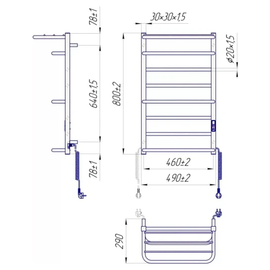 MARIO Рушникосушка Люксор-I 800х500/290 електр. TR Бренд: MARIO Країна-виробник: Україна Товарна категорія: Рушникосушки. Група: Рушникосушки з нержавійки (Рушникосушки з нержавіючої сталі) Тип: електро. Підключення: низ Артикул: 2.3.6100.11.P Кількість ребер: 8 Висота:800 мм., Ширина: 490 мм., Глибина: 290 мм. Вага: 6,9 кг. Теплова потужність ТЕН: 130 Вт. (до +55 С)