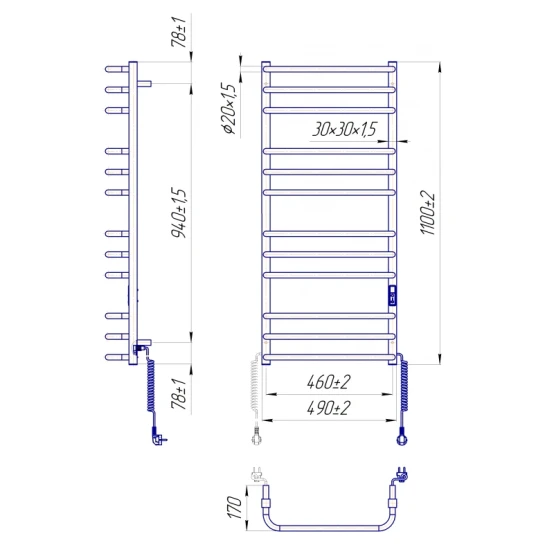 MARIO Рушникосушка Преміум Стандарт-I 1100х500/170 електр. TR Артикул: 2.2.1510.03.P Бренд: MARIO. Країна-виробник: Україна. Гарантія: 5 років. Кількість ребер: 12 Висота: 1100 мм. Ширина: 490 мм. Глибина: 170 мм. Вага: 9,6 кг. Потужність: 190 Вт. Підключення: ліве/праве Регулювання температури на: +40, +45 і +50 °С Установка часу нагріву на 3 год, 6 год, або постійно. У комплекті: -кріплення -коннектор