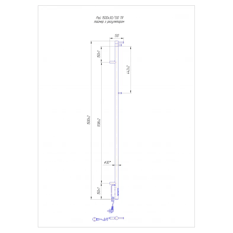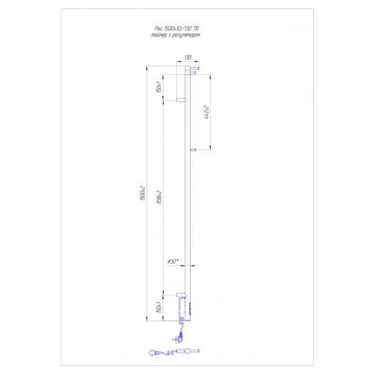 MARIO Рушникосушка Рей-І 1500х30/130 електр. TR 2.21.1103.15.Р Бренд: MARIO. Країна-виробник: Україна. Гарантія: 5 років. Кількість ребер: 1 Висота: 1500 мм. Ширина: 300 мм. Глибина: 130 мм. Вага: 3,5 кг. Потужність: 45 Вт. +55 С Підключення: низ
