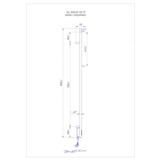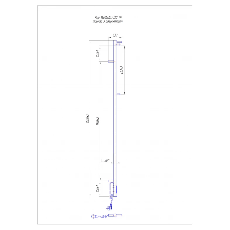 Рей Кубо-І 1500х30/130 електр. TR (2.2.1203.16.Р) Регулювання температури до 60 °С. Вага: 4,1 кг У комплекті: кріплення Характеристики: Виробник MARIO, Колекція РЕЙ Модель Кубо I Призначення: Рушникосушка Кількість секцій: 1 Тип: електричний Потужність 50 Вт