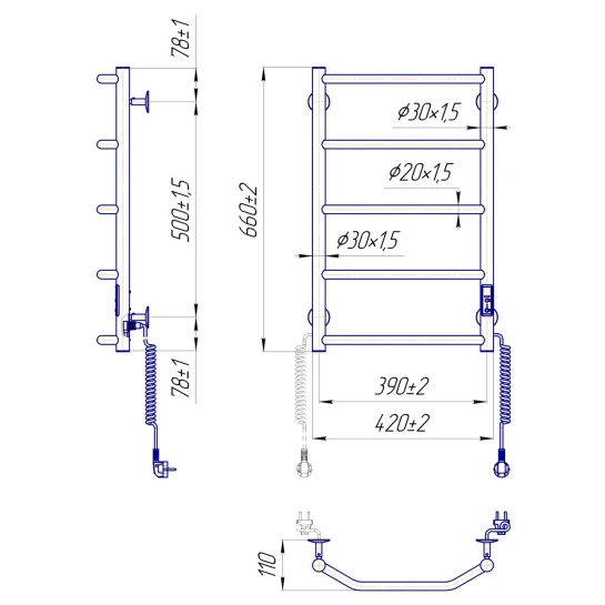 MARIO Рушникосушка Трапеція НР-І 650х430/110 електр. TR Бренд: MARIO Країна-виробник: Україна Товарна категорія: Рушникосушки. Група: Рушникосушки з нержавійки (Рушникосушки з нержавіючої сталі) Тип: електро. Підключення: низ Артикул: 2.3.2813.10.P Кількість ребер: 5 Висота: 660 мм., Ширина: 420 мм., Глибина: 110 мм. Вага: 4,3 кг. Теплова потужність ТЕН: 65 Вт. (до +55 С)