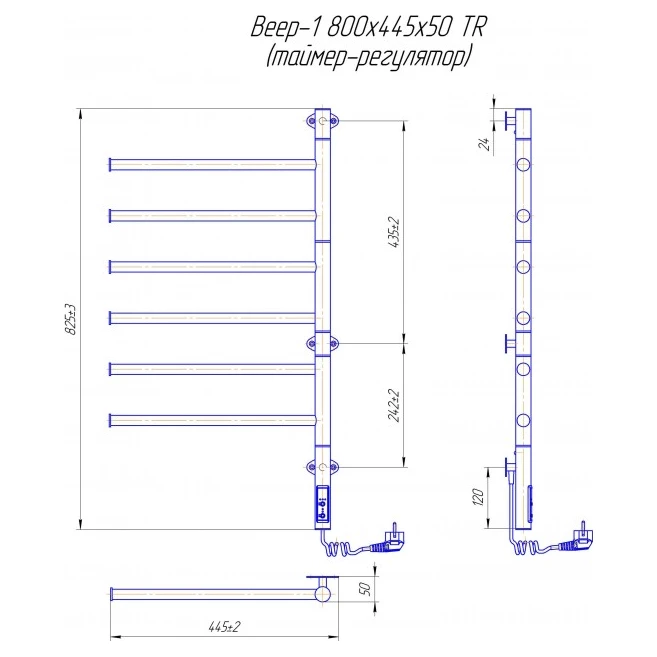 MARIO Рушникосушка Веер-I 800х445/55 електр. TR Бренд: MARIO Країна-виробник: Україна Товарна категорія: Рушникосушки. Група: Рушникосушки з нержавійки (Рушникосушки з нержавіючої сталі) Тип: електро. Підключення: низ Артикул: 2.3.0506.11.P Кількість ребер: 3 Висота: 820 мм., Ширина: 445 мм., Глибина: 55 мм. Вага: 4,1 кг., Теплова потужність ТЕН: 80 Вт.