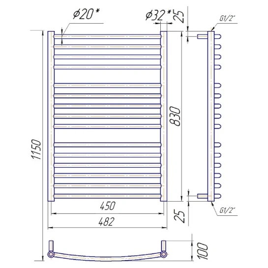 Виробник: Mario Колекція: ФЕНІКС Артикул: 1.2.1101.03.P Підключення: На гарячу воду Колір: Хром Гарантія: від виробника Висота 830 мм Ширина 482 мм Глибина 100 мм Міжцентрову відстань 105 мм Кількість ребер: 15 Діаметр підключення: G 1/2 '' Обсяг 2,6 л Вага 6,4 кг Рекомендована потужність ТЕНа (MEG / REG / MOA), W 200 Матеріал: нержавіюча сталь Марка стали: AISI 304 Країна-виробник: Україна Комплект поставки: полотенцесушитель - 1шт. комплект кріплень - 1шт. кран Маєвського - 1 шт. заглушка - 1шт. паспорт - 1шт. коробка - 1шт.