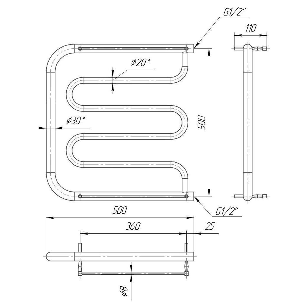 Товарна категорія: Рушникосушки. Група: Рушникосушки з нержавійки (Рушникосушки з нержавіючої сталі) Тип: Водяна. Підключення: бокове MARIO Рушникосушка Фокстрот 530х500/500 Бренд: MARIO Країна-виробник: Україна Артикул: 1.1.1900.08.P Кількість ребер: 4 Висота: 530 мм., Ширина: 500 мм., Підключ: 500 мм. Вага: 3,3 кг., Об'єм: 1,3 л. Теплова потужність 75/65/20 С: 108 Вт., ТЕН: - Вт.