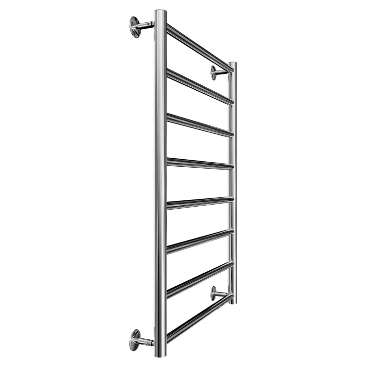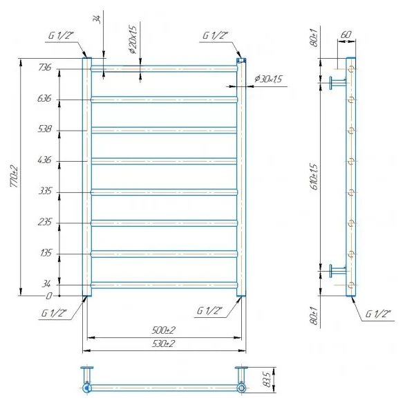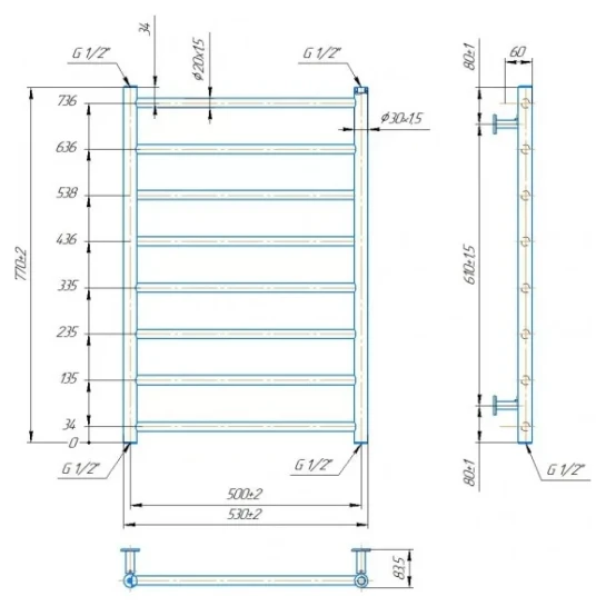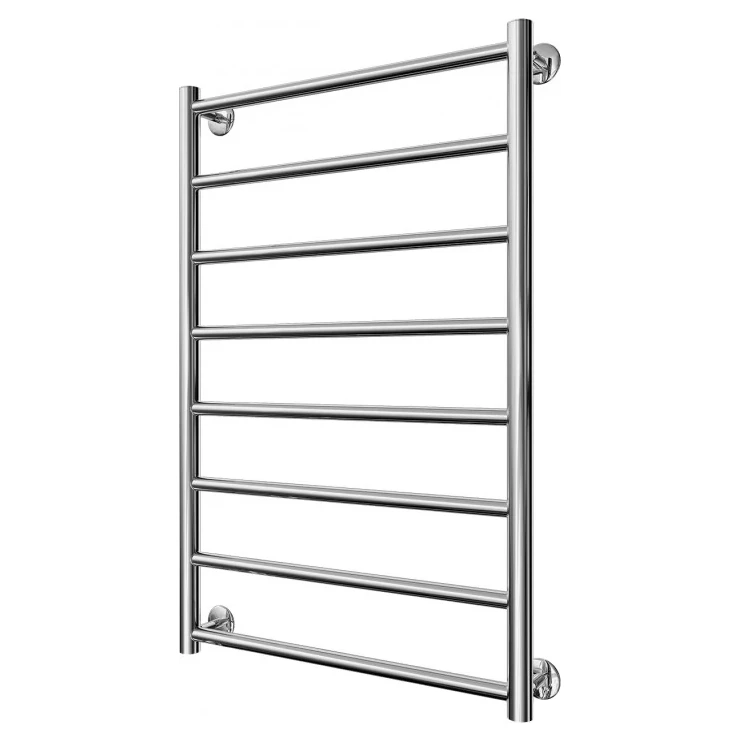 Рушникосушка INOX Флет 770х530/500. Розміри: висота - 770 мм, ширина - 530 мм, глибина 80 мм, міжцентрове відстань для підключення - 500 мм, діаметр підключення G1/2''. Варіанти підключення: нижнє, діагональне та бічне. Кількість ребер – 8. Виготовлена з полірованої нержавіючої сталі без хромування. Для всесезонної роботи водяну модель можна переобладнати на комбіновану, встановивши ТЕН, рекомендована потужність 200 Вт. Сумісні аксесуари: поворотні поліці та навісні крючки для збільшення функціональності. Рекомендовано підключати рушникосушарку за допомогою кранів Маріо. Гарантія - 50 років у закритій системі опалення, 5 років у централізованій.