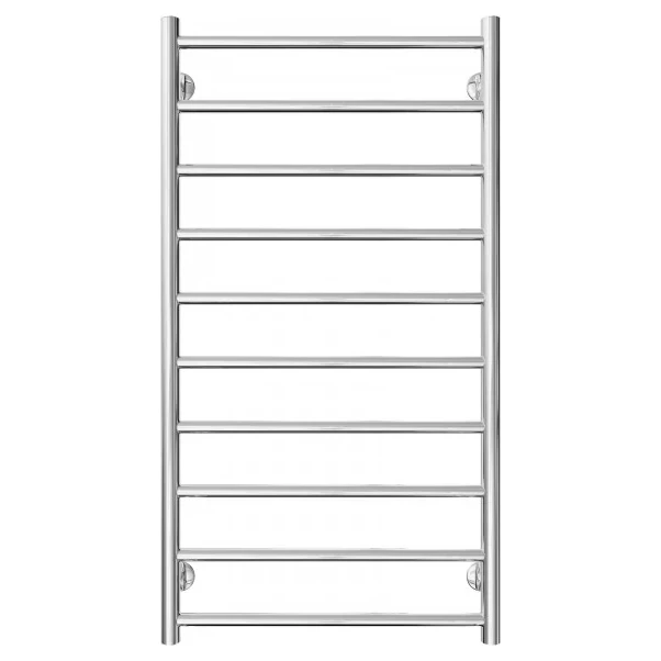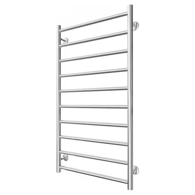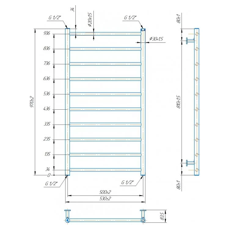Рушникосушка INOX Флет 970х530/500. Розміри: висота - 970 мм, ширина - 530 мм, глибина 80 мм, міжцентрове відстань для підключення - 500 мм, діаметр підключення G1/2''. Варіанти підключення: нижнє, діагональне та бічне. Кількість ребер – 10. Виготовлена з полірованої нержавіючої сталі без хромування. Для всесезонної роботи водяну модель можна переобладнати на комбіновану, встановивши ТЕН, рекомендована потужність 300 Вт. Сумісні аксесуари: поворотні поліці та навісні крючки для збільшення функціональності. Рекомендовано підключати рушникосушарку за допомогою кранів Маріо. Гарантія - 50 років у закритій системі опалення, 5 років у централізованій.