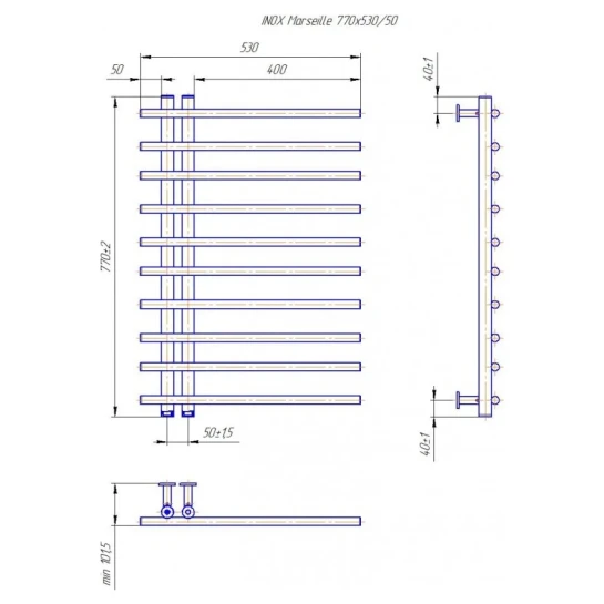Рушникосушарка INOX Marseille 770х530/50 - це вишуканий виріб, який поєднує в собі естетичний зовнішній вигляд та високу функціональність. Вона стане не лише джерелом тепла у вашій ванній кімнаті, але й елегантним доповненням до інтер'єру.